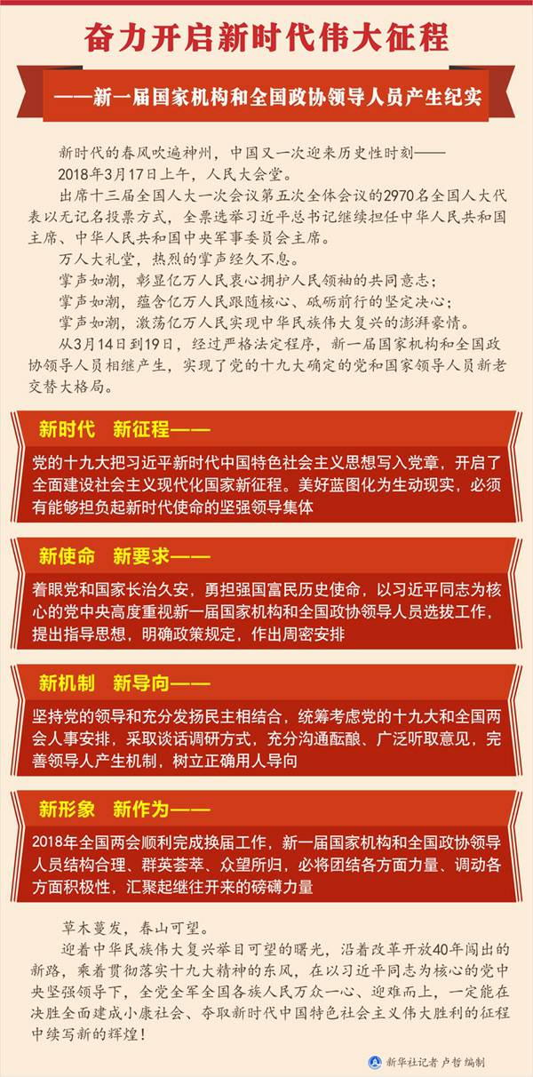 新华社北京3月19日电 题:奋力开启新时代伟大征程——新一届国家机构和全国政协领导人员产生纪实