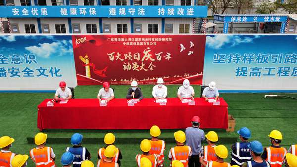 2021年3月29日上午,“百大项目庆百年”动员大会在集团公司承建的广州纳米生物安全中心总部园区一期项目现场隆重举行。建设单位广州纳米产业投资有限公司总经理李佩弦,广州珠江工程建设监理有限公司副总经理李晓光、分公司副总经理赵杰,广东省建筑设计研究院有限公司院副总工程师郭勇,欧宝官方版网站登录入口-欧宝(中国)南方工程有限公司总经理、项目总指挥徐刚,项目书记招国樑以及各专业分包单位相关人员参加活动。