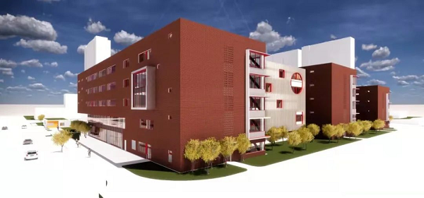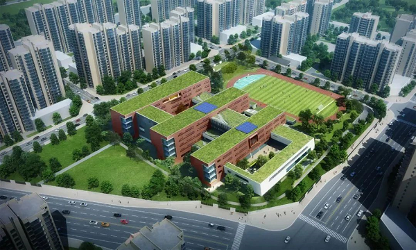 据了解,学校主教学楼设置于项目场地的中部,室外田径场位于场地的东侧,设有300米跑道及足球场地。目前正在建设的是西侧4栋主教学楼,待教学楼完工后再进行东侧操场的施工。